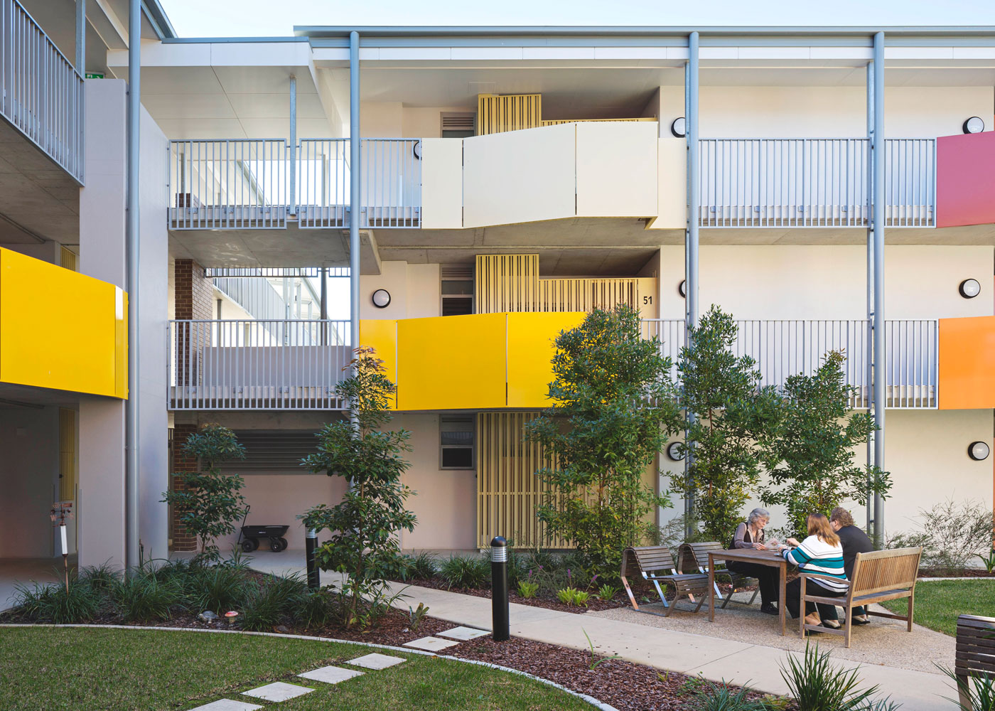 The buildings incorporate generous corridors and communal spaces, including a community room and communal BBQ area where residents can gather to socialise. The development also includes an off-leash dog park to encourage interaction between the residents of stages I and II.