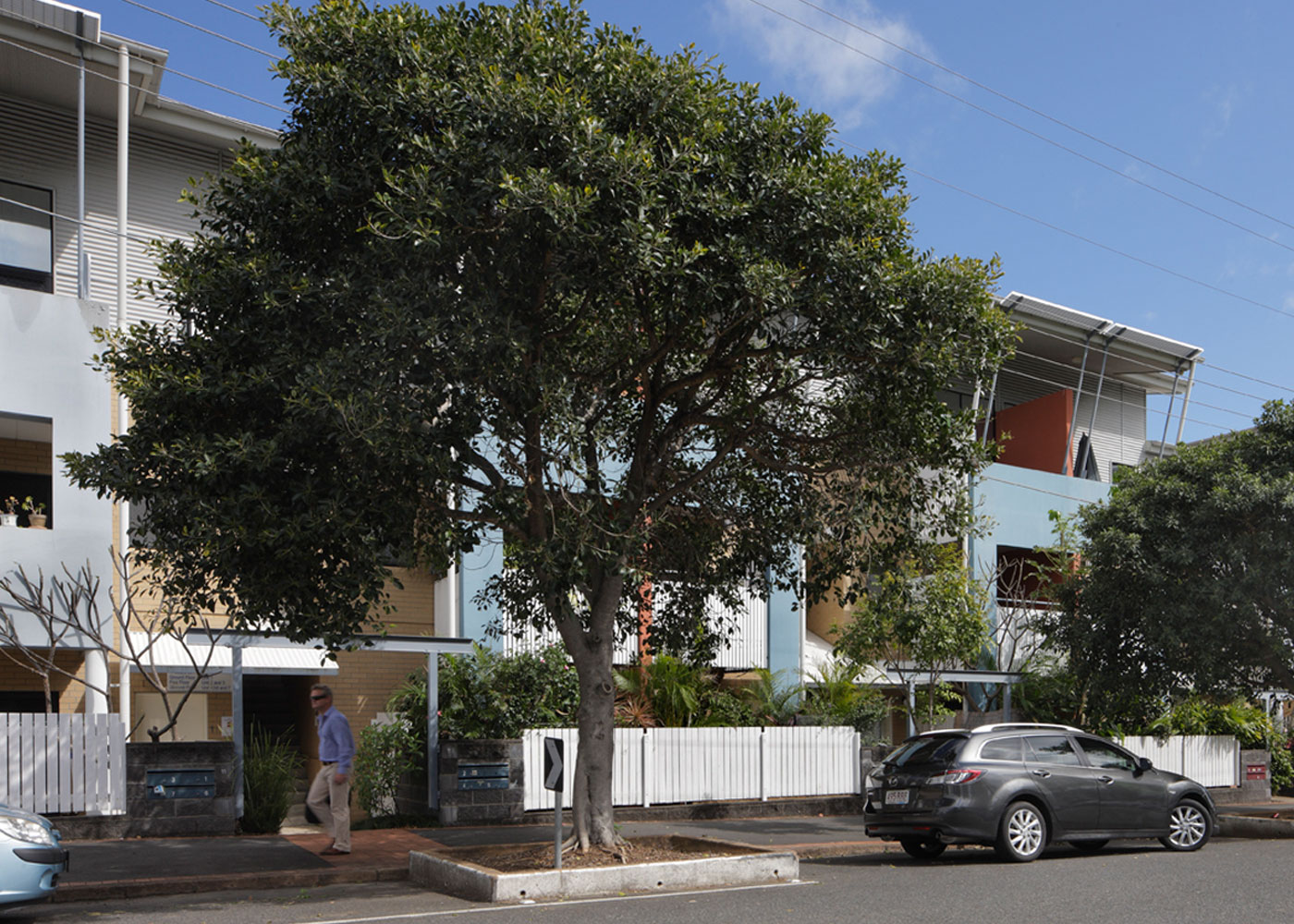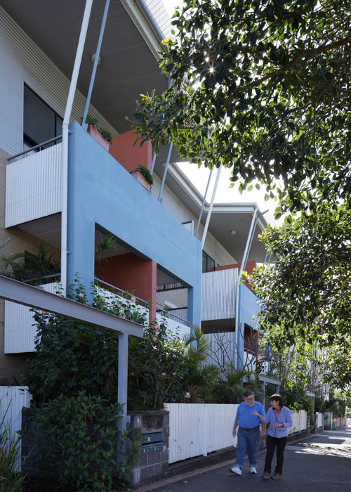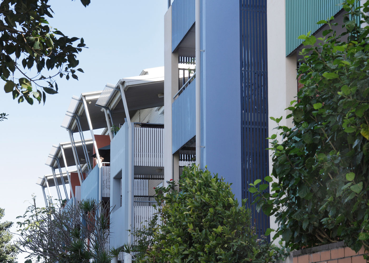 Located in the Bowen Hills urban renewal precinct, the project’s interface with the street was considered radically urban for Brisbane at the time. The development included boarding house accommodation, studios, and one and two bedroom apartments.