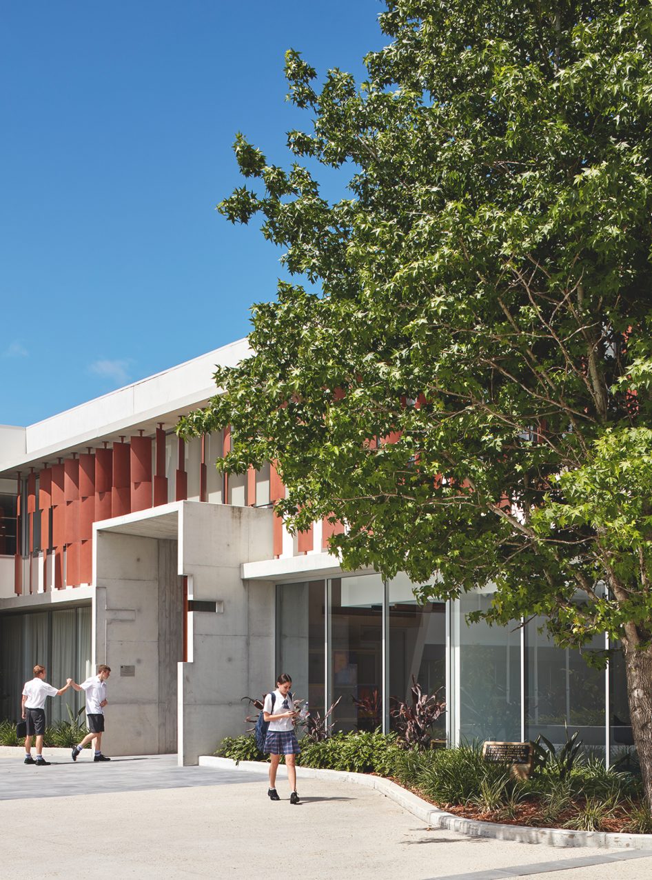The St Thomas Aquinas Centre provides an assured urban presence, renewed circulation and opportunities for collaboration at Aquinas College, the Gold Coast’s oldest co-education school.