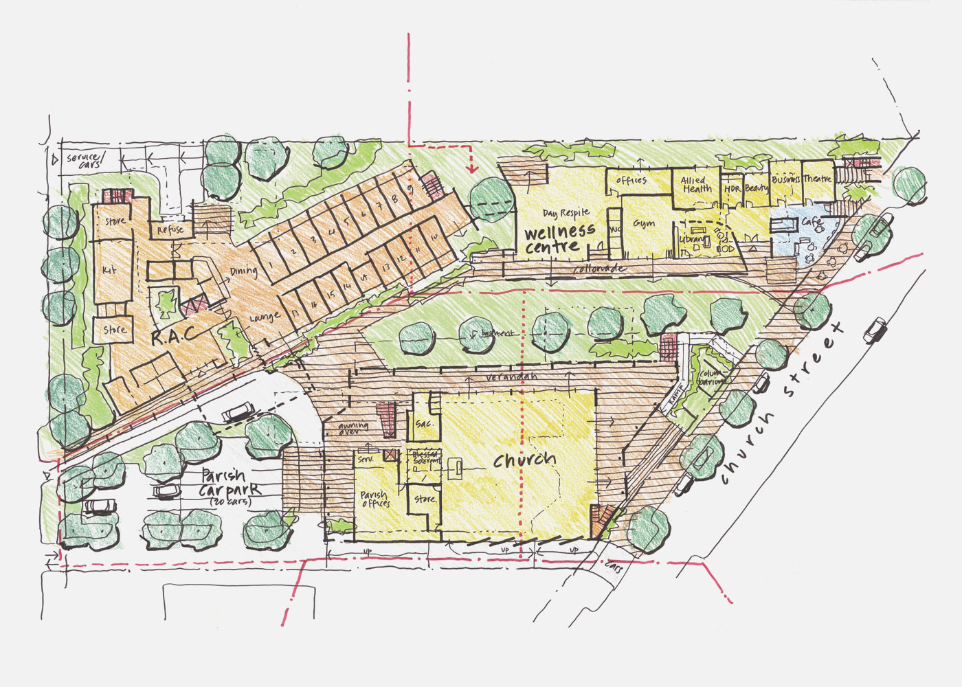 Stella Maris Catholic Church had its beginnings in a collaborative master plan process. The objective was to explore future possibilities for the parish’s land and its former church in central Maroochydore. Deicke Richards worked initially with Stella Maris and later with both the parish and aged care provider, St Vincent’s Care Services. The result is an innovative care community which brings together the new church and aged care and wellness facilities.