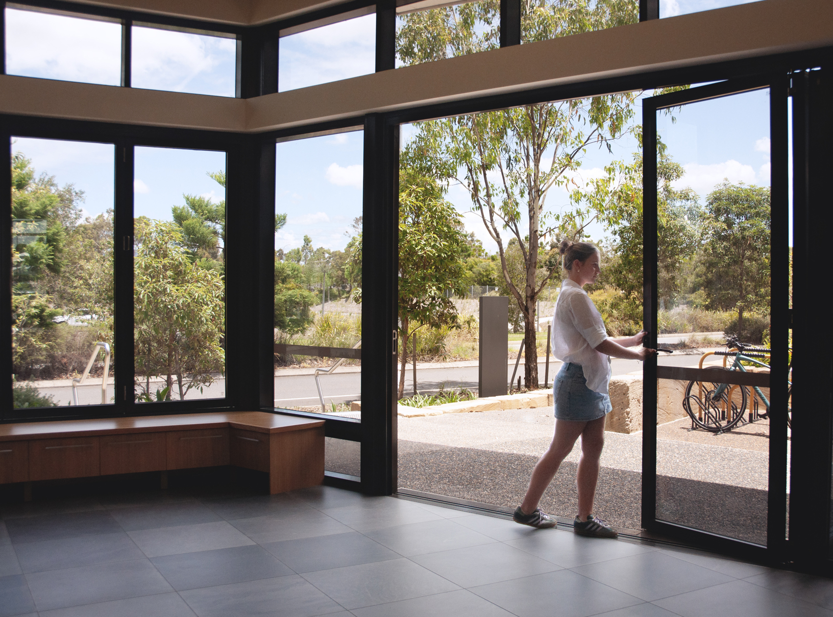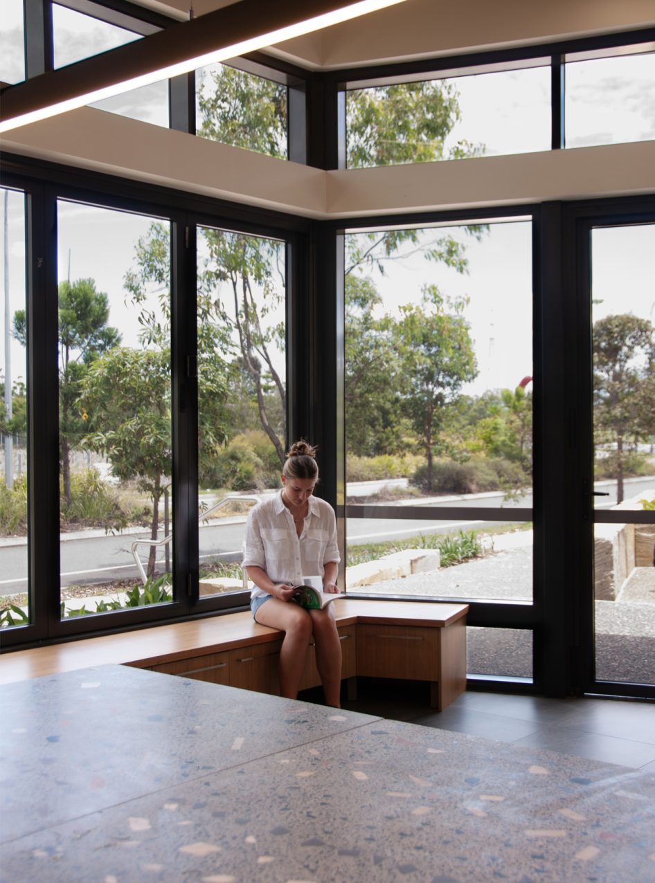With a primary target audience of young people, our The Buzz at Yarrabilba design is flexible and multifunctional so it can adapt and evolve along with the community. Its spaces invite participation, from relaxed engagement and social connection to learning. Promising possibility, they respond to Council’s aspirations for this project – to encourage connection, learning, earning and innovation. The site’s scale allows for the integration of landscape within the building; contributing to its amenity and comfort, and fostering custodianship of the immediate and adjacent environment.