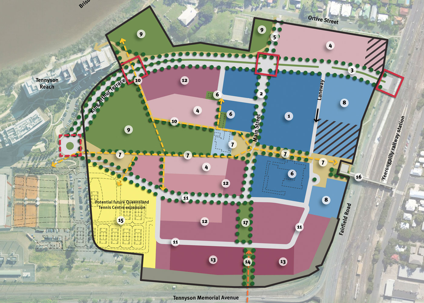 The original vision for this project was to create a sustainable transit-oriented development (TOD), a demonstration project to show the benefits of this approach to urban development. The 14ha riverfront site was then state owned. Located between the Queensland Tennis Centre and the Yeerongpilly railway station, it included the significant historic buildings of the former Animal Research Institute.